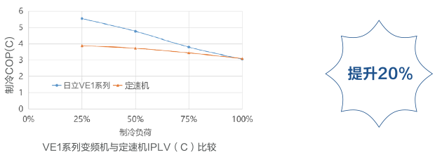 相比普通定速機制冷綜合能效提升20%,日立MAT-VE1系列低溫強熱型空氣源熱泵(冷水)機組,制冷綜合部分負荷IPLV(C)最高可達4.45