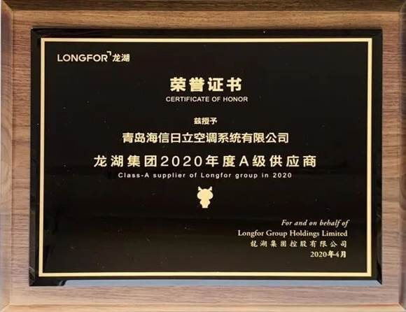 2019年3月,海信日立再度榮獲了萬科集團材料設備類A級供應商稱號。這也標志著日立中央空調成為空調類唯一連續五屆蟬聯該榮譽的中央空調品牌。