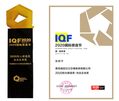 NB-IOT物聯網多聯機主動服務技術獲得2020國際質造節“2020匠心質造獎、杰出產品獎”;2020國內市場年度“科技創新產品”:南山獎