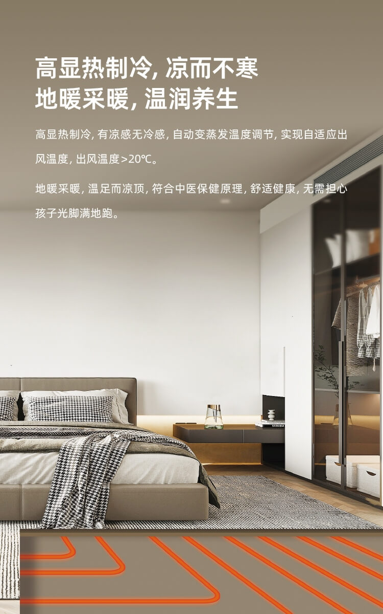 室內機和地暖二合一控制,操作更簡單;地板干燥功能,舒適更便捷