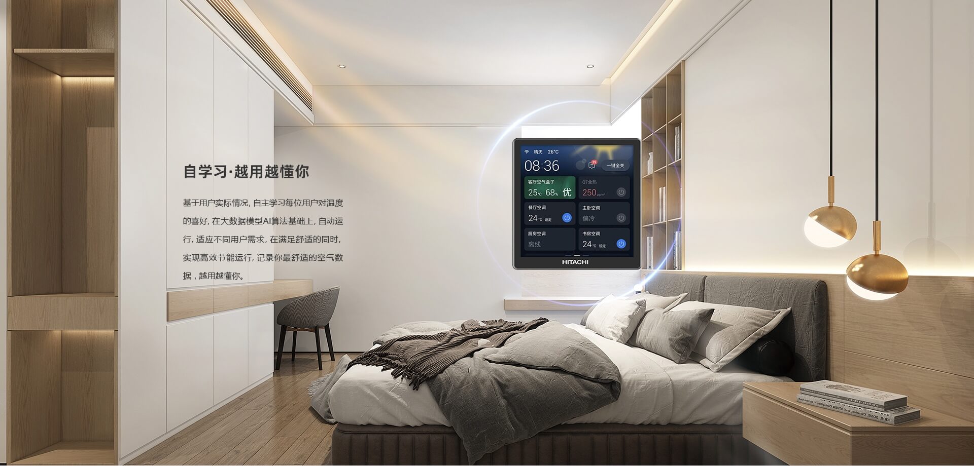 日立智慧屏進(jìn)一步升級,可實(shí)現(xiàn)空調(diào)、地暖、新風(fēng)、除濕、加濕系統(tǒng)一體化控制,也可獨(dú)立操控,高效便捷。系統(tǒng)間的聯(lián)動(dòng)控制可實(shí)現(xiàn)自動(dòng)化空氣管理,AI級智能調(diào)節(jié),復(fù)雜系統(tǒng)簡單設(shè)定,一鍵運(yùn)行,使用無憂。