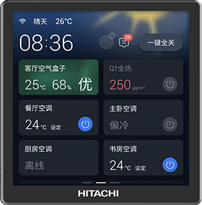 日立智慧屏進一步升級,可實現(xiàn)空調(diào)、地暖、新風、除濕、加濕系統(tǒng)一體化控制,也可獨立操控,高效便捷。系統(tǒng)間的聯(lián)動控制可實現(xiàn)自動化空氣管理,AI級智能調(diào)節(jié),復雜系統(tǒng)簡單設定,一鍵運行,使用無憂。