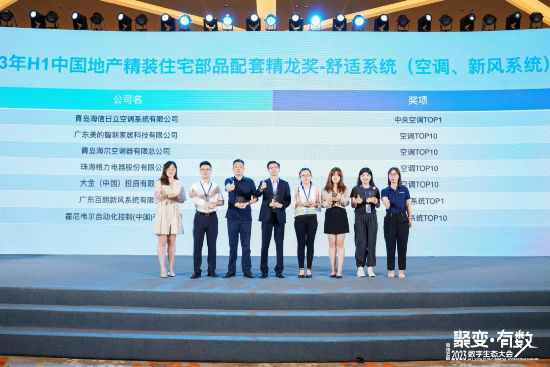 青島海信日立空調系統有限公司作為協辦單位獲邀參會并發言。同時,日立中央空調以在精裝地產配套領域的行業領先優勢,榮獲2023年H1中國地產精裝住宅部品配套“精龍獎”殊榮。