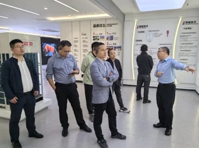 日立與華潤合作已經十五年之久,有著深厚的合作友誼。本次華潤置地領導一行參觀日立工廠,先后參觀了展廳、實驗室、智能制造線體、無人倉庫等,并對日立生產制造的規模、智能化、保障能力表示肯定和贊揚。