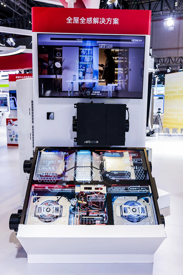 日立家用舒適系統展區,全新升級的全屋全感2.0智慧空氣定制系統吸引了眾多觀眾駐足。該系統圍繞人的感官感受出發,基于日立大數據模型AI技術等創新,集成空調、地暖、新風、除濕、加濕等空氣設備為一體,一鍵全感,智慧聯動,滿足全人群、全場景、全氣候空氣需求,解鎖家的空氣智慧,領潮高品質生活。