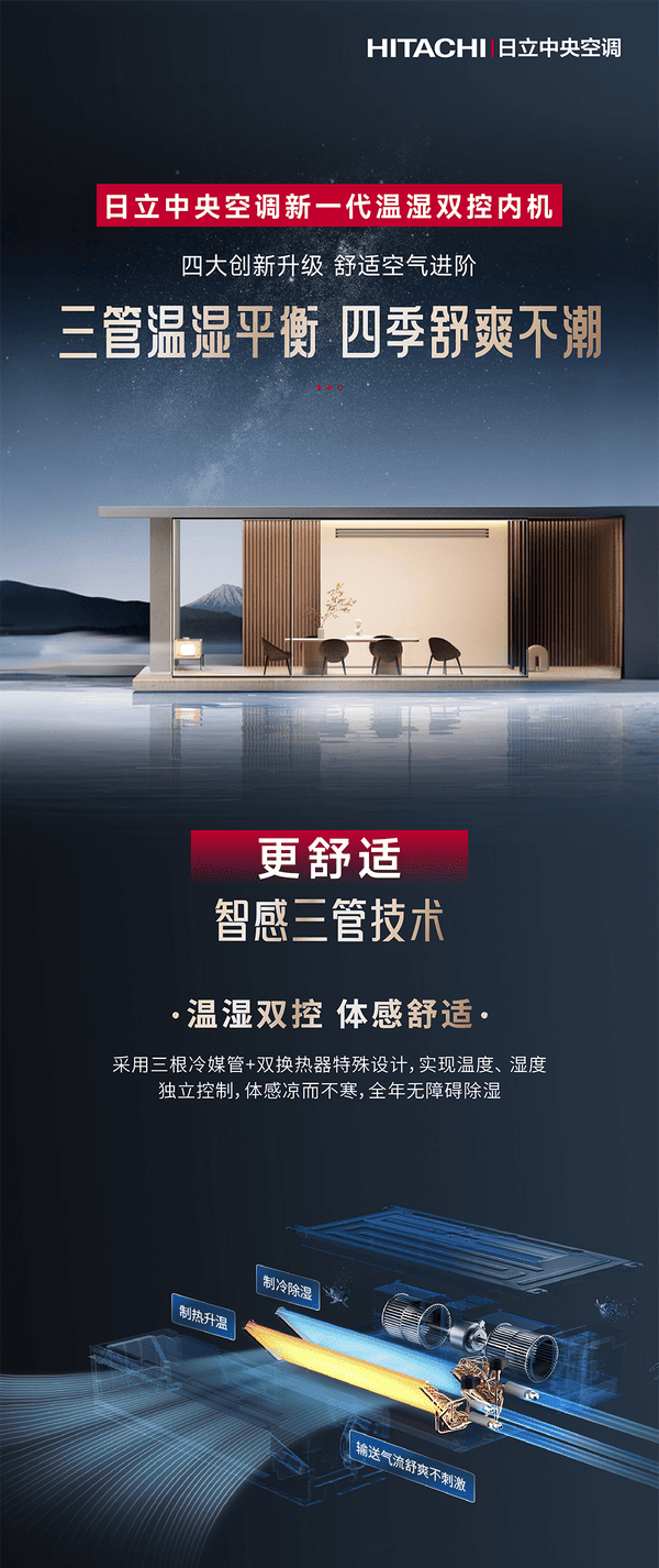系統搭載AI與大數據分析技術,實時感知環境與使用需求,自動優化運行。面對華東氣候的多變,日立智享系列地暖中央空調在冷熱調節、濕度平衡和靜音舒適之間取得均衡,滿足家庭全年不同季節的舒適需求。