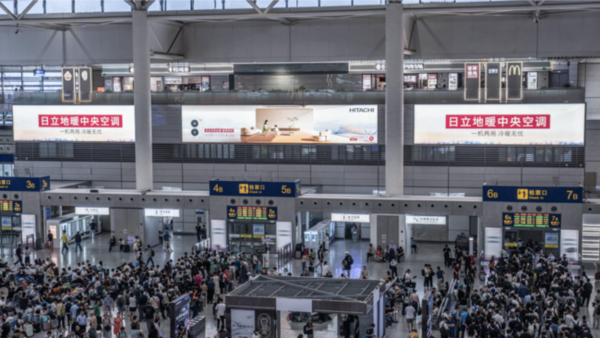 在北京、上海、廣州的高鐵樞紐,人潮涌動、車聲作響。候車廳的大屏上,日立中央空調的廣告醒目展現,將“家的舒適”帶入城市的節奏中,讓短暫停留的片刻,也能喚起對舒適生活的想象。