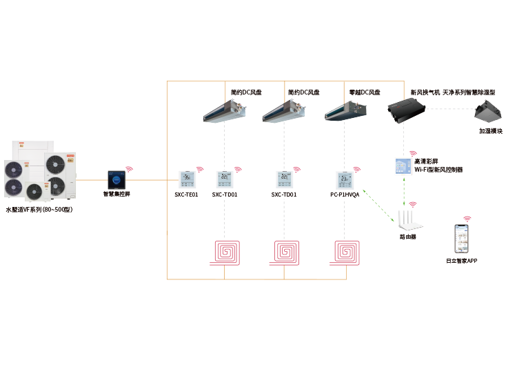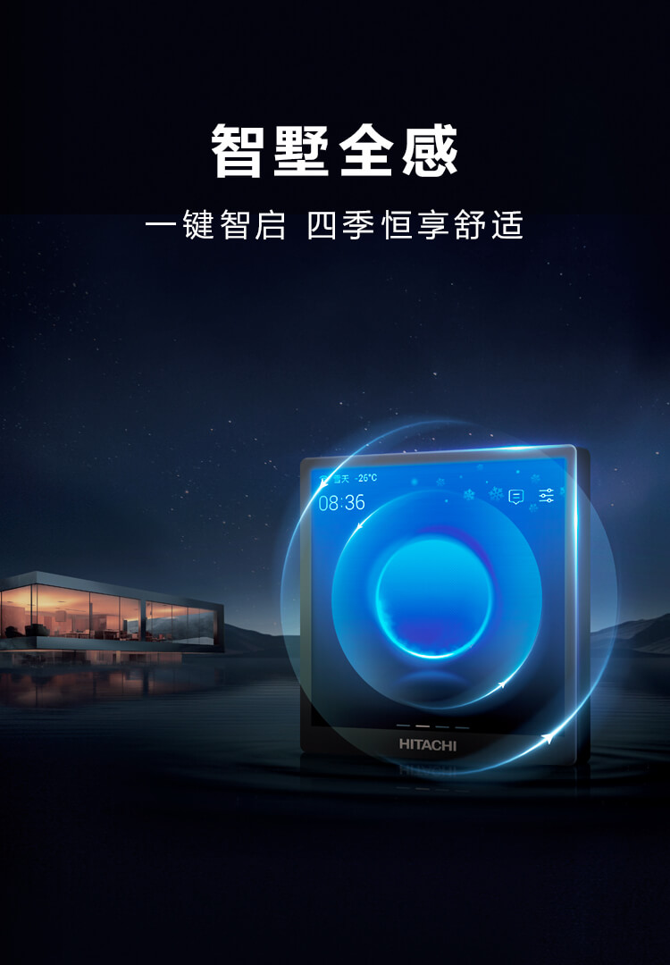 日立全屋全感2.0空氣定制系統將智控進一步升級,可實現空調、地暖、新風、除濕、加濕系統一體化控制,也可獨立操控,高效便捷。