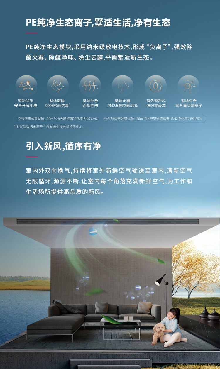 全屋全感能夠為不便通風的室內環境通風換氣, 實時排濁增氧,打造足不出戶的富氧“呼吸”。